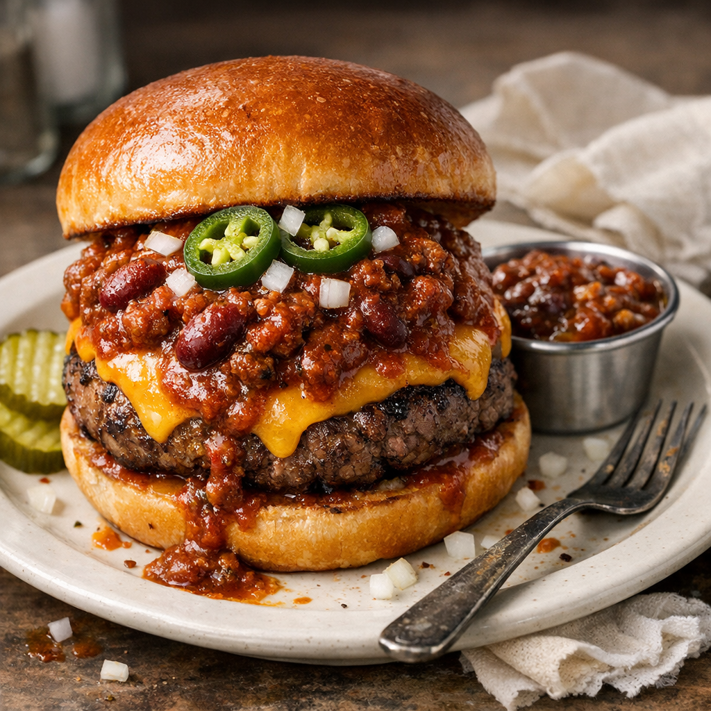 Chili cheeseburgers are a greatest-hits mashup of two American classics: the backyard burger and the lunch-counter bowl of chili. Here, the chili is made from scratch—tomato-forward, deeply savory, and thick enough to cling to the burger without soaking the bun. Once you learn how to build a proper chili base and control thickness, this becomes an easy, repeatable weeknight favorite.