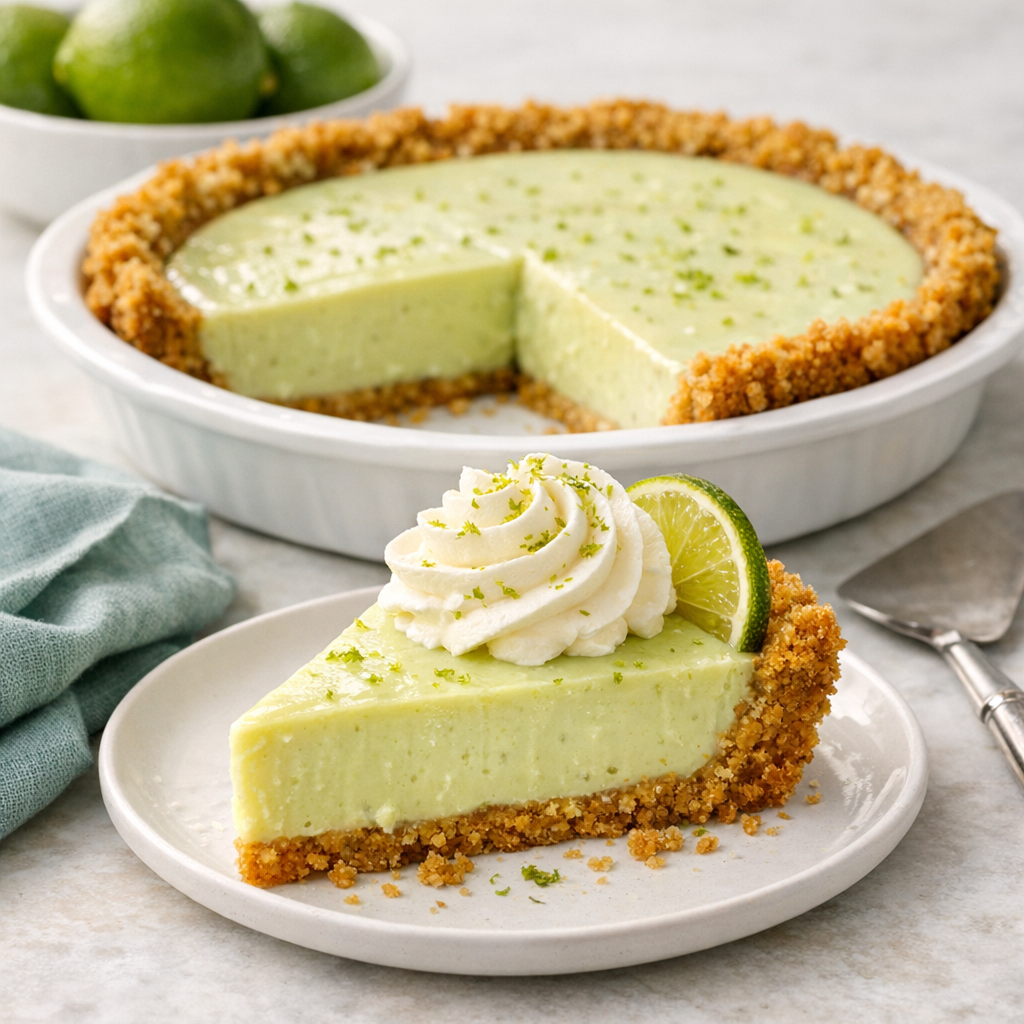 Optional whipped cream: Beat cold heavy cream, powdered sugar, and vanilla to soft-medium peaks. Dollop or pipe onto chilled pie and garnish with lime zest if desired.