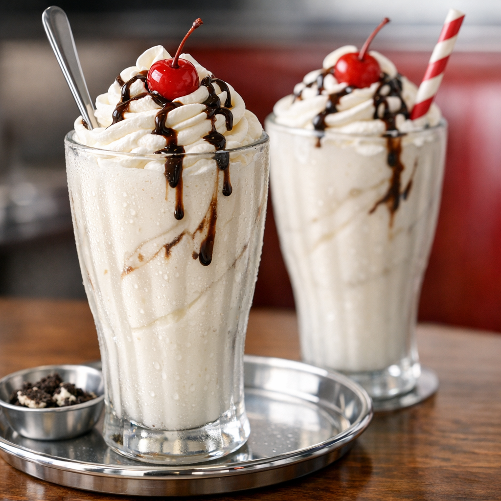 A classic American diner-style milkshake that’s ultra-thick, cold, and spoonable—built on the right ice cream-to-milk ratio and a few smart blending tricks. Choose vanilla for the timeless base or spin it into chocolate, strawberry, or malted with simple add-ins.