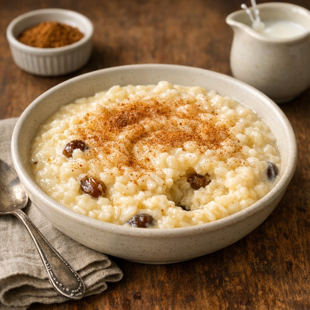 A classic American-style rice pudding made slowly on the stovetop for a creamy, custard-like texture, finished with warm cinnamon. This recipe uses pantry staples and teaches the key technique: gentle heat and steady stirring for perfectly tender rice and silky pudding.