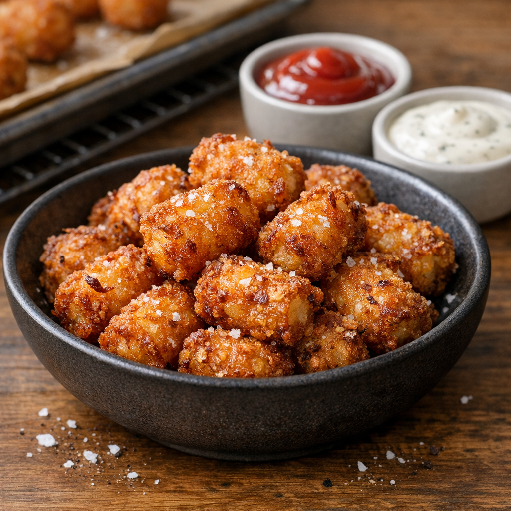 Tater tots are a true American classic—born from thrift, beloved for their crunch, and endlessly snackable. The trick to making them extra crispy isn’t mystery seasoning; it’s managing surface starch and moisture so the outside can brown fast. This recipe leans on simple kitchen science to deliver diner-style crunch at home.
