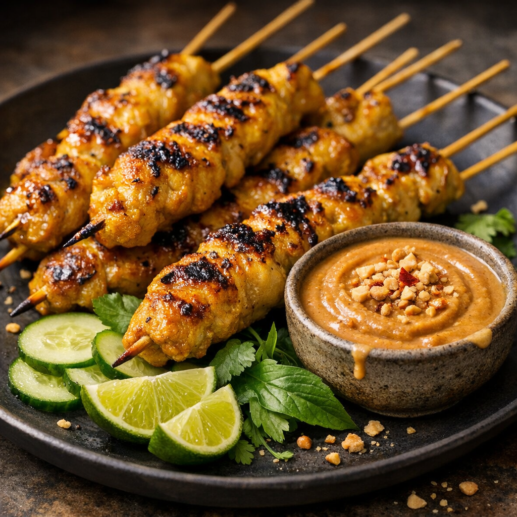 In Bangkok, the air around evening markets turns smoky and sweet as skewers hiss over charcoal and vendors brush on marinades between rapid flips. These chicken skewers borrow that street-stall rhythm: a quick, fragrant marinade, a hot grill, and a peanut sauce that balances coconut richness with lime and a little heat. Serve them with cucumber for crunch and a handful of herbs for the fresh bite you’d find at the stall’s plastic table.