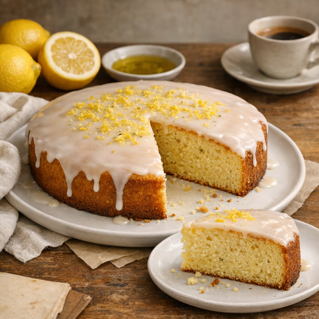 A tender, sun-scented Italian-style lemon olive oil cake with a delicate crumb and a glossy lemon glaze—simple, comforting, and perfect with espresso or afternoon tea.