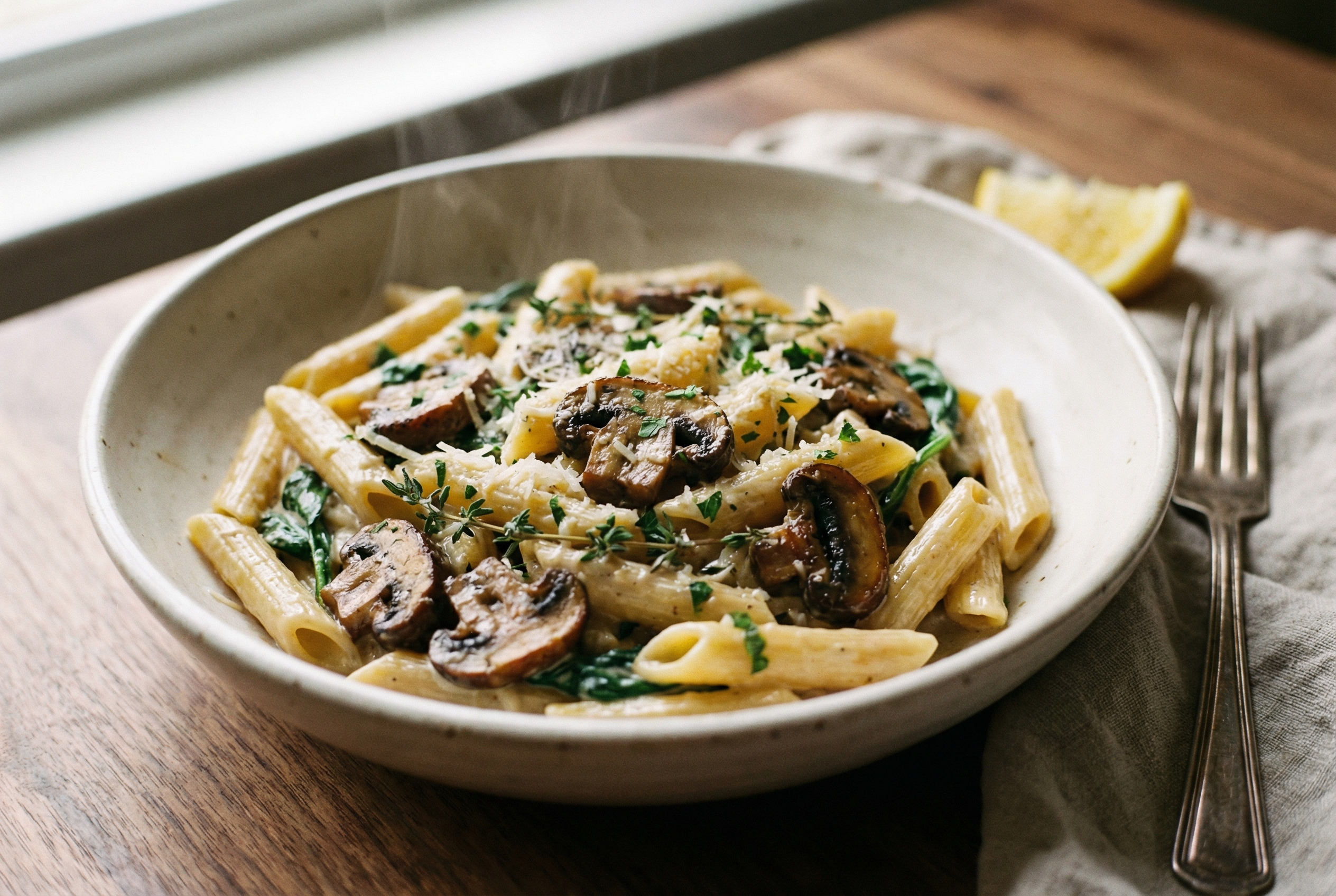 A fast, family-friendly creamy mushroom pasta that tastes like a restaurant dinner but comes together in one pan (plus the pasta pot). Cozy, savory, and ready in 30 minutes—perfect for real weeknights.