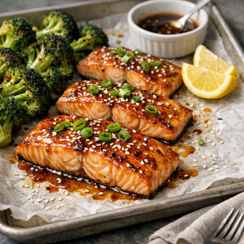 A fast, family-friendly sheet-pan dinner with tender salmon, crisp-tender broccoli, and a sticky-sweet honey garlic glaze—all done in about 30 minutes with minimal cleanup.